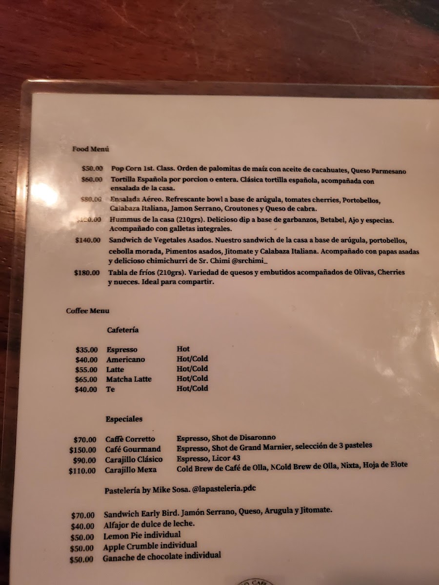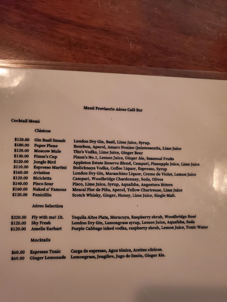 Aéreo Café Bar offers a compact yet enticing menu that balances classic flavors with playful twists. Among the tapas, the Bruschetta Española and Tabla de quesos stand out for their fresh, high-quality ingredients, while the Saturn Cheesecake adds a sweet, indulgent finish to any small-plate selection. The Papas Aereo provide a comforting, crispy side that pairs perfectly with the lighter dishes. Cocktail enthusiasts will appreciate inventive choices like the Carajillo Popular, the smooth and sophisticated Espresso Martini, and the intriguingly named Uno de cochinita! - Chichen ItzaBicicletta, which brings a local flair to the menu. The New York Sour rounds out the selection with a familiar yet expertly crafted option. Overall, the menu at Aéreo Café Bar delivers a thoughtful mix of savory, sweet, and spirited offerings, making it a versatile spot for both casual bites and refined drinks.